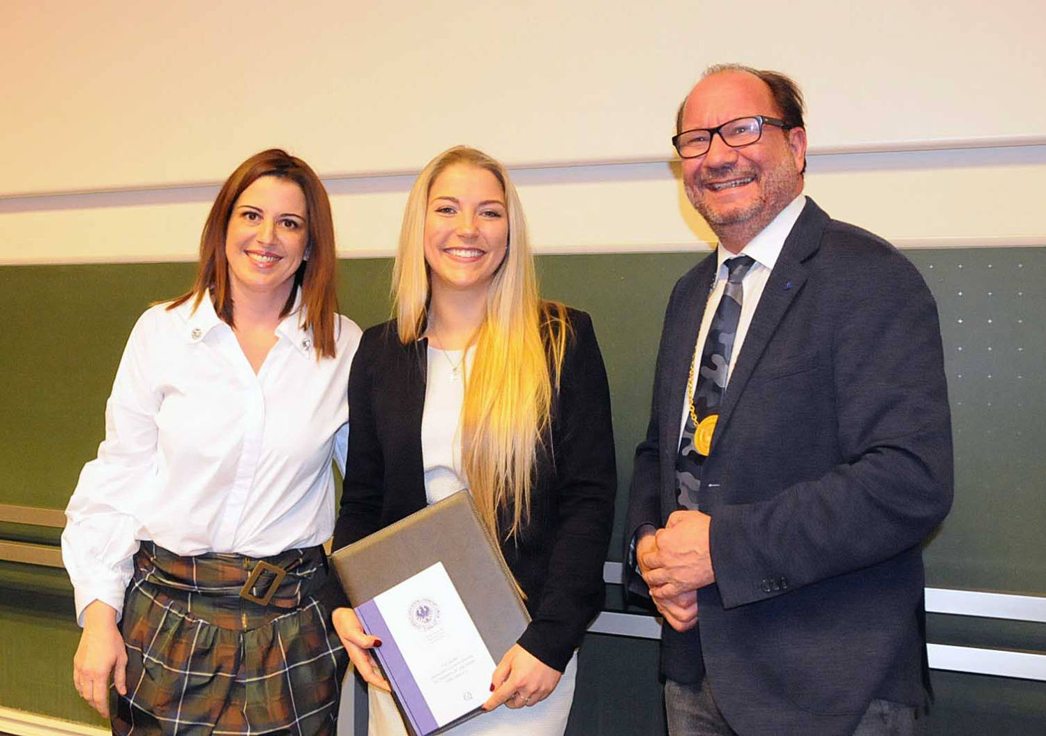 Der Preis wird nach geheimer Umfrage unter den Kommilitonen von beiden Vereinen in der Examensfeier vergeben. Da Dr. König wegen Terminproblemen nicht teilnehmen konnte, wurde der Preis vom Vorsitzenden des zahnärztlichen Vereins Herr Prof. Dr. mult. Sader und dem neuen Präsidiumsmitglied Frau Dr. Trimpou übergeben. Die Semestersprecherin Frau Nathailie Jost konnte den Preis, eine kostenfreie Jahresmitgliedschaft in beiden Vereinen und den Scheck in diesem Halbjahr entgegennehmen.