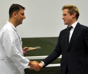 Es scheint eine Tradition dieser Veranstaltung zu werden, dass das Examenssemester den engagiertesten Assistenten auszeichnet. Diese Auszeichung ging wie zuvor an OA Dr. Puria Parvini.